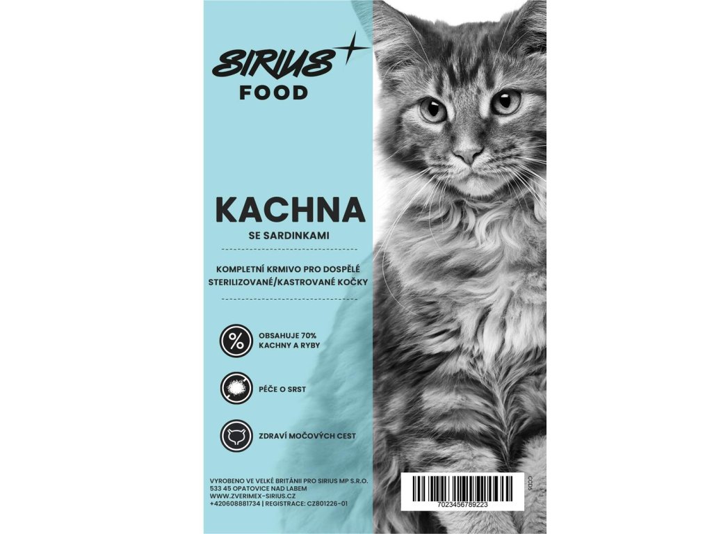 Sirius Food Connoisseur kastrát dospělá kočka kachna a sardinky