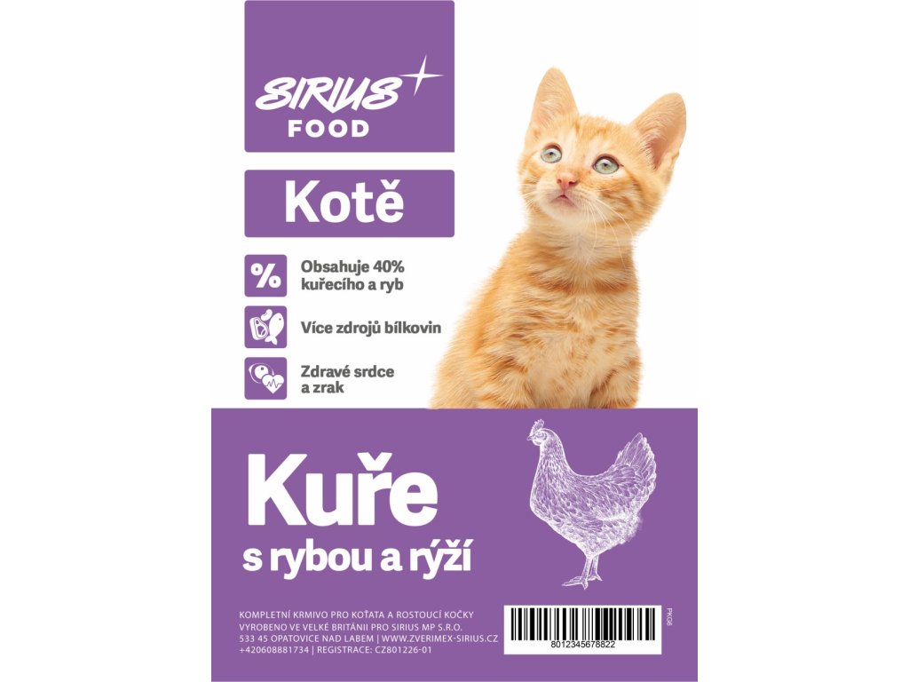 Sirius Food Super Premium kotě kuře s rybou a rýží