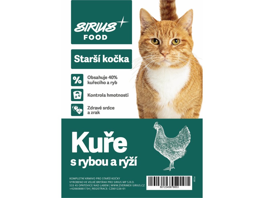 Sirius Food Super Premium starší kočka kuře s rybou a rýží